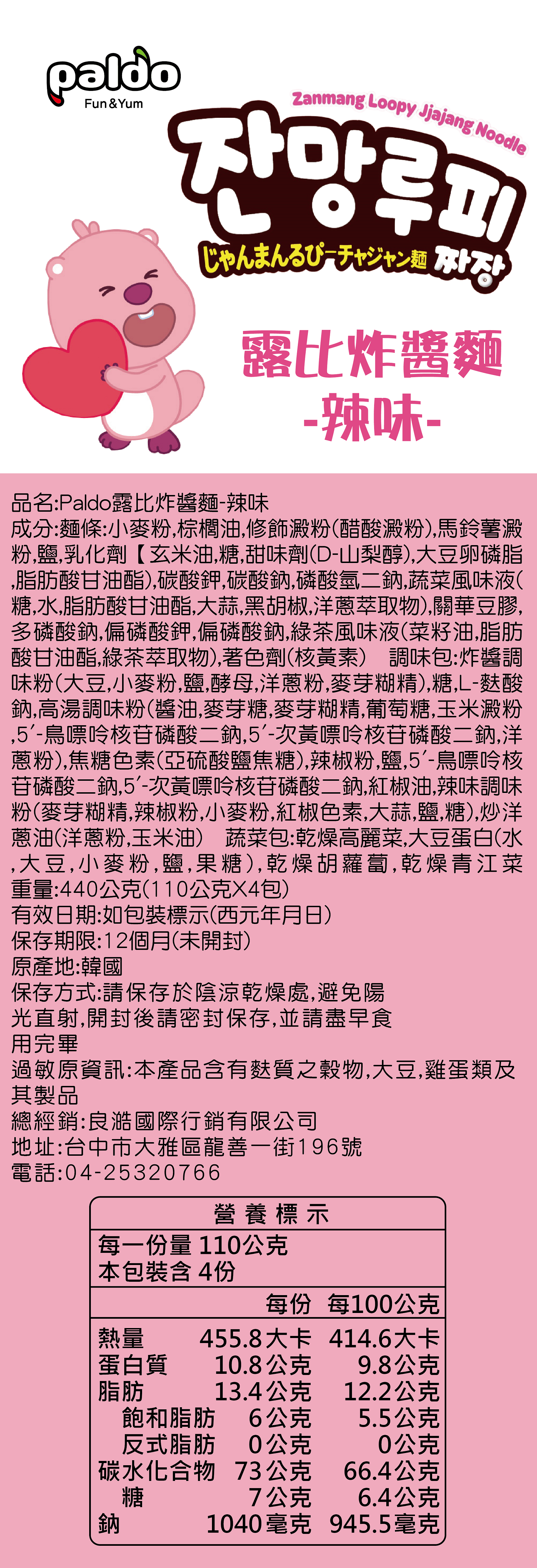 Paldo露比炸醬麵-辣味(五辛素)